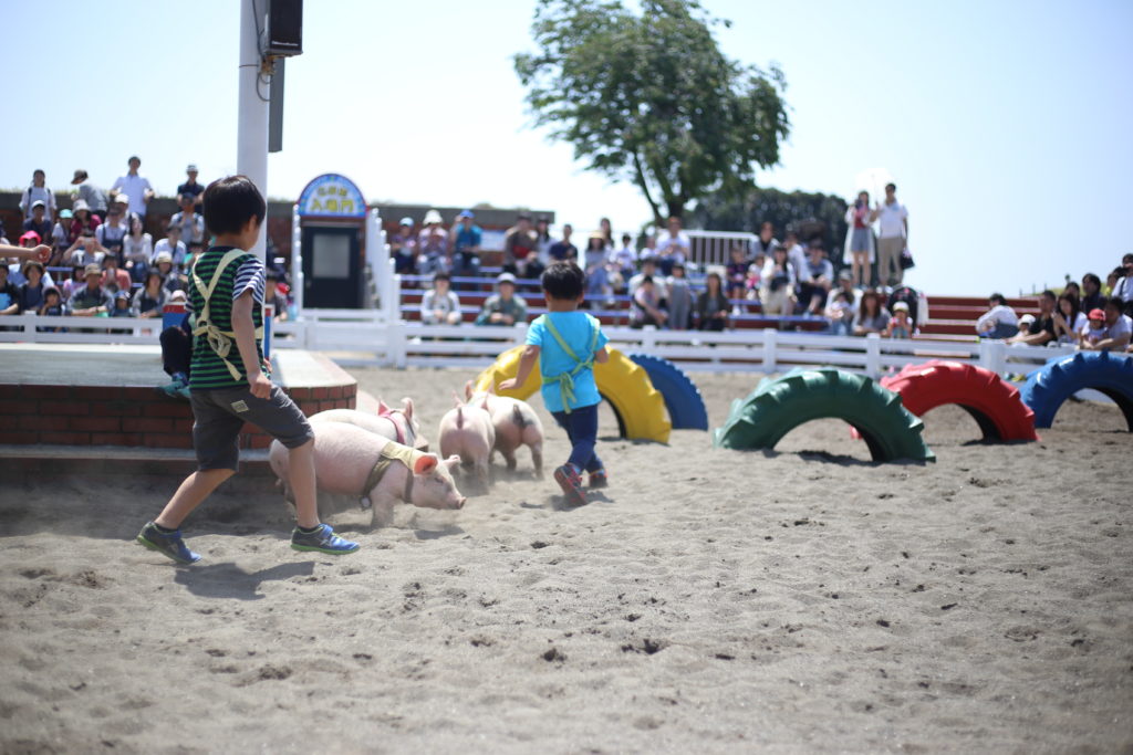 マザー牧場には、1970年からやっているという【こぶたレース】というのがあるんですよ。