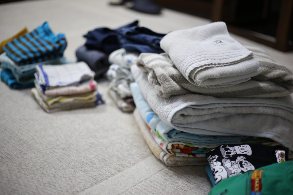 畳みながらもクシャミをし、タオルで顔を拭いても目がかゆくなり、
