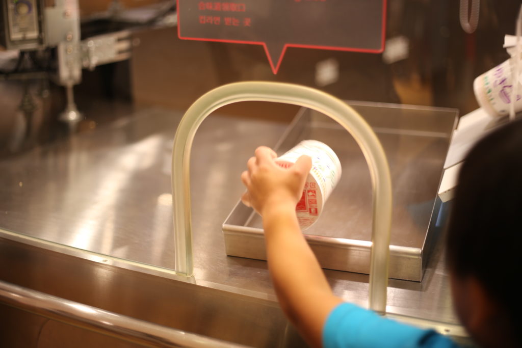 ふたを閉めて、ビニールで密閉されて、コロンと出てくるのを受け取ります。