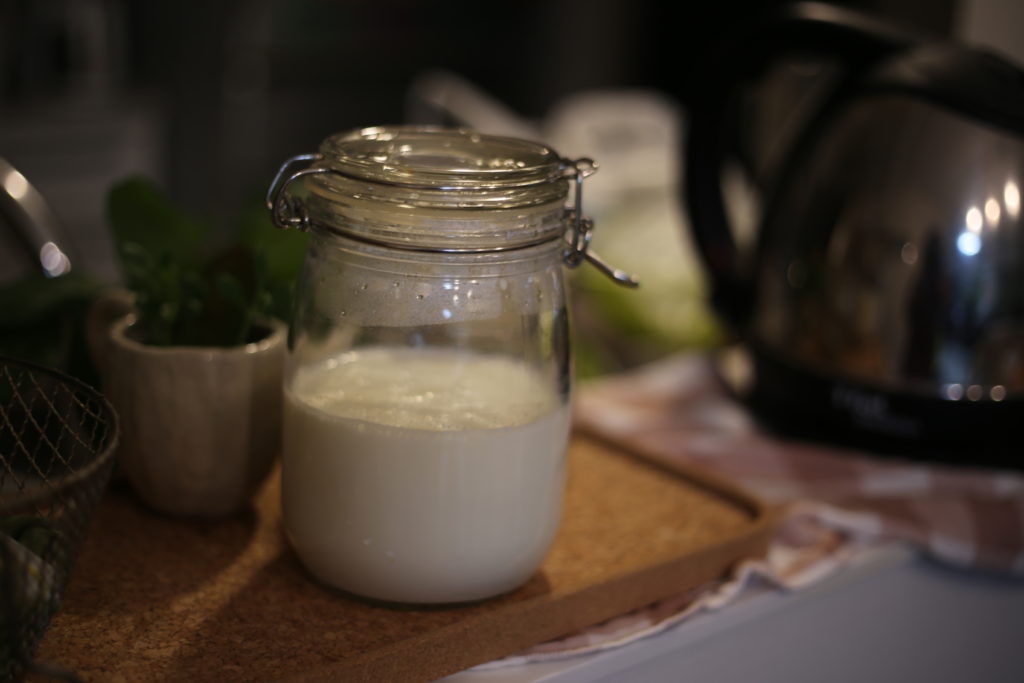 ヨーグルトになったときの、上の部分(ちょっと固めの部分)ってちょっと臭いがキツくなってくるんですが、その部分を別の瓶に取って、それを種にしてまた新しいヨーグルトを作れば、下の食べる部分はまろやかで、美味しいヨーグルトができますよ!