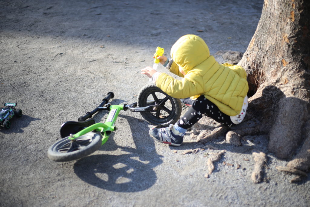 嬉しすぎて跳ね回りそうな6歳児を自転車の後ろに乗せて、
