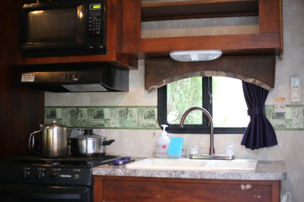 中にはキッチン、トイレ、シャワー、ベッドとすべて揃っています。