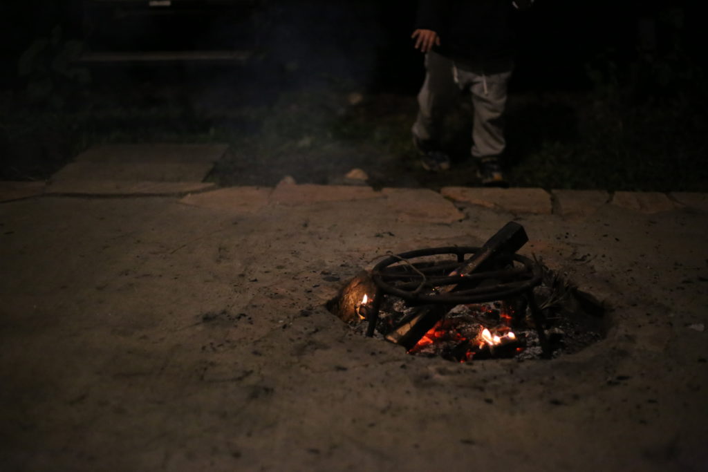 宿泊者には無料で薪がプレゼントされて、ウッドデッキの中にある焚火窯で焚火をしました。