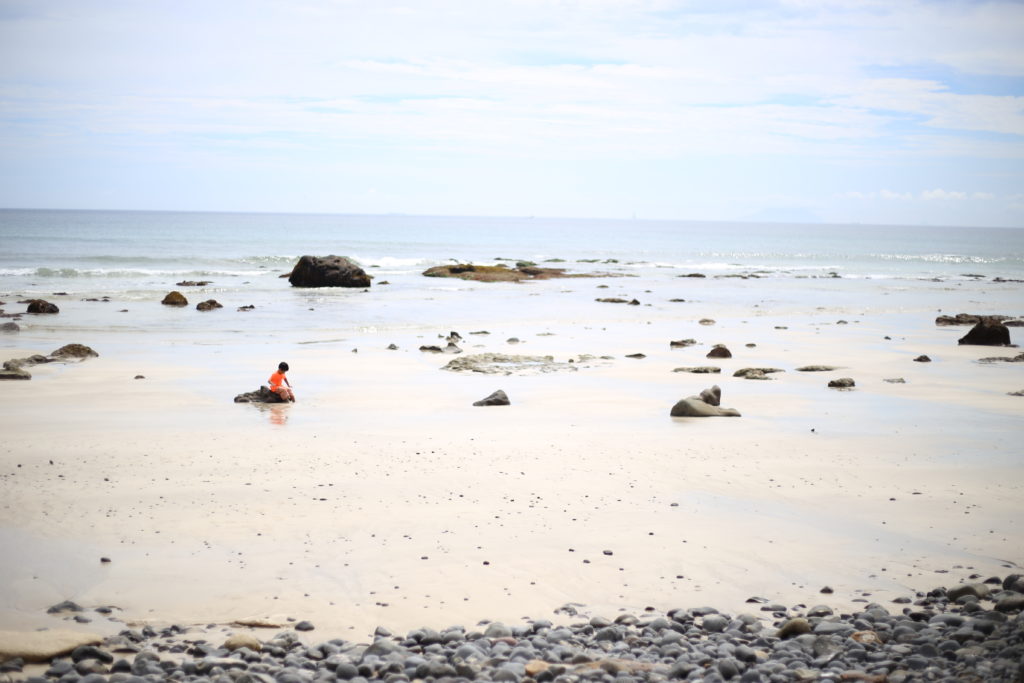 ふと仕事のことを忘れてカニや小魚を追いかけて、