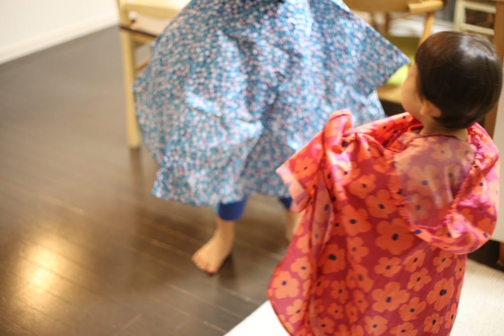 保育園の送り迎えは自転車なので、雨の日はみんなカッパを着て、自転車に乗ります。