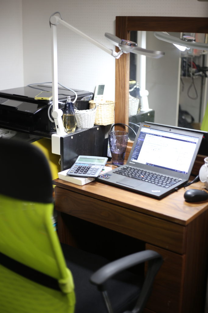 パソコンとイスとプリンターだけの小さなスペースですが、やっとこれだけのスペースを確保できました。