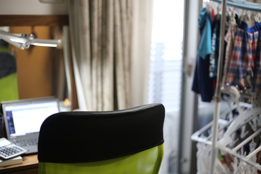 これまでずっと、リビングのイスで仕事をしていましたが腰を悪くしそうだったので、ちゃんとしたPCチェアを中古で買いました。