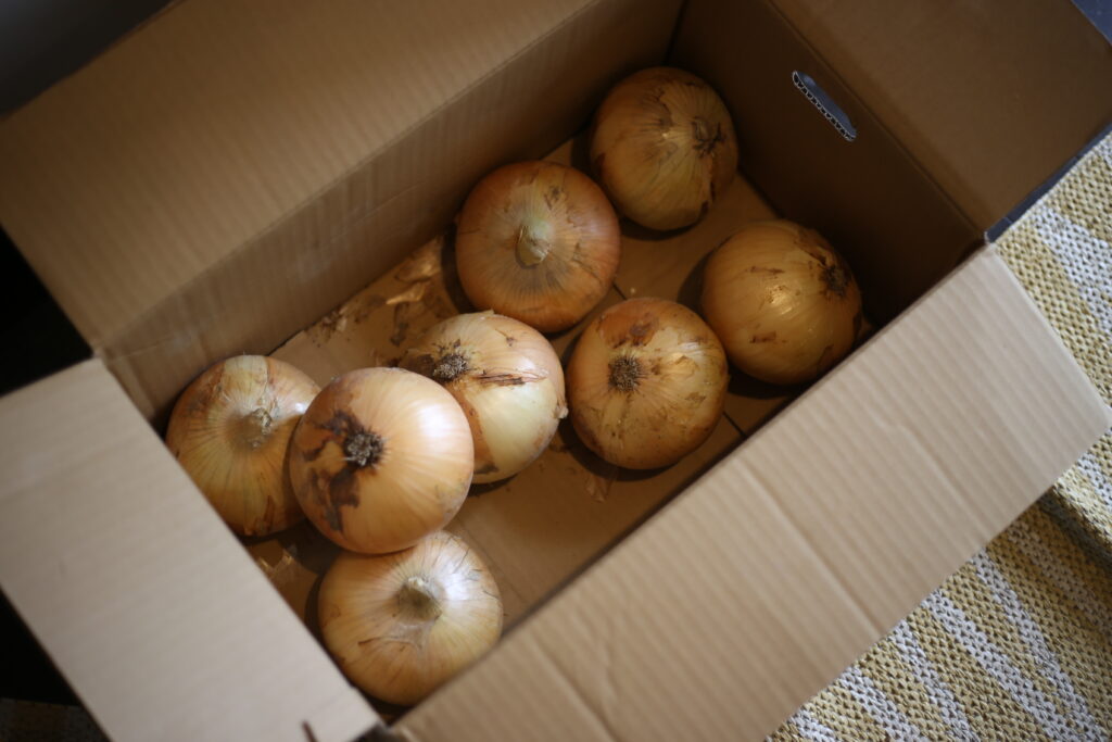 箱買いして大きな玉ねぎがゴロゴロしていると、
